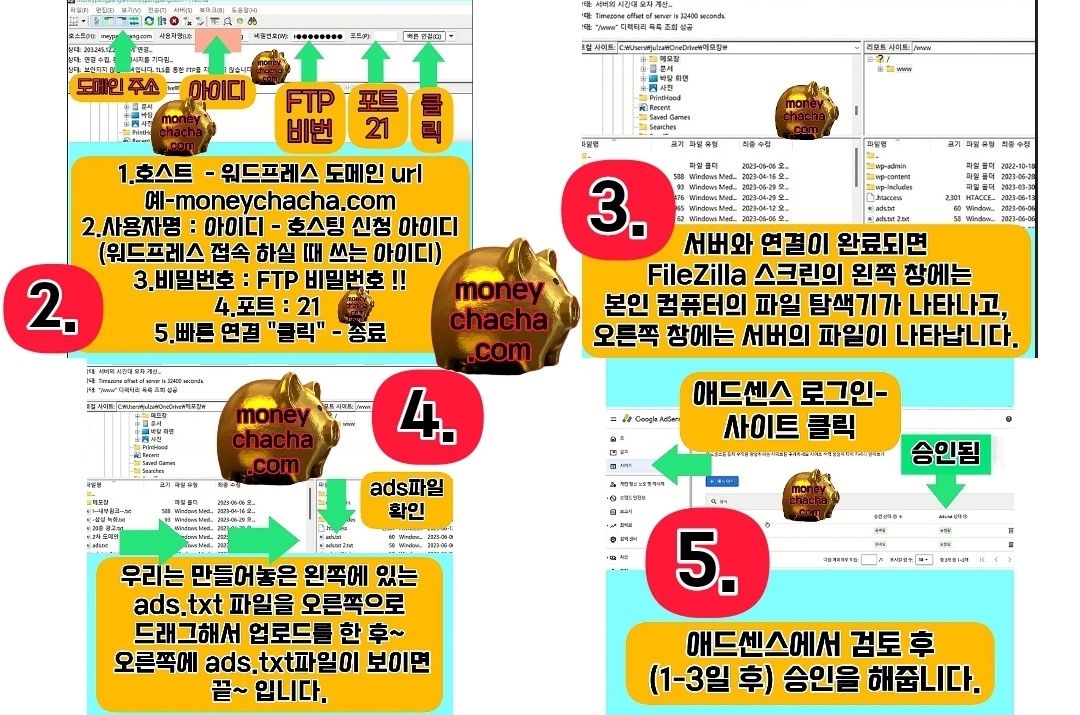 2. 카페 24 서버 사용자 - 워드프레스- 파일질라 - 접속 - 업로드 방법 - 애드센스 승인